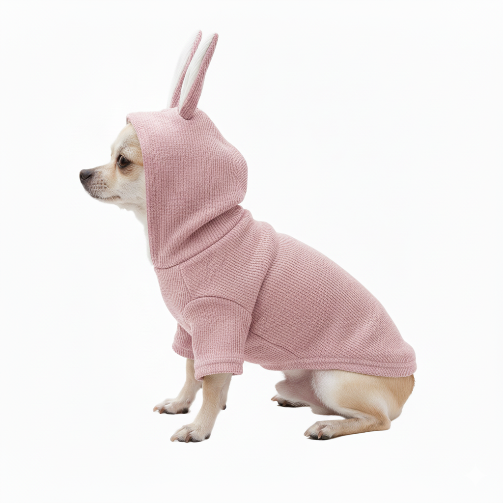 Introduce the adorable Bunny Sweater into your pet's wardrobe for instant charm and cozy warmth! This garment is made from a soft, stretchable ribbed knit material, ensuring a snug yet comfortable fit that moves easily with your small companion.