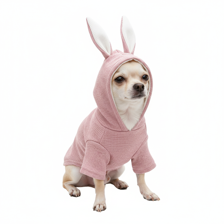 The iconic upright bunny ears are built into the hood, offering a uniquely cute detail that's perfect for capturing memorable photos. It's simple pull-over design makes dressing your pet a quick and fuss-free process for the owner. Give your furry friend the gift of warmth and undeniable cuteness with this charming, easy-to-wear sweater!